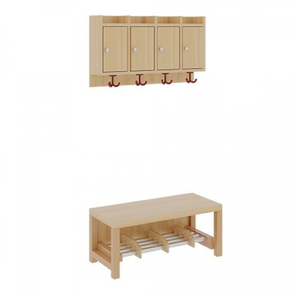 Bitte beachten: Komplettgarderoben mit Stollenrahmen / Stütze und fest montierten Oberteil müssen ab eine Sitzhöhe von 42cm / Gesamthöhe 158 cm an der Wand fixiert oder mit Seitenwangen versehen werden.