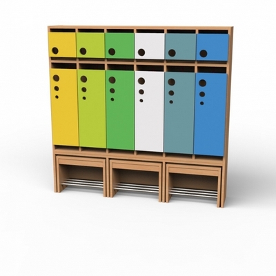 Garderoben-Ablage "Colour-Line" BxHxT 119,6 x 40 x 20 cm 6 Plätze - 6 x 3-fach Kunststoffhaken