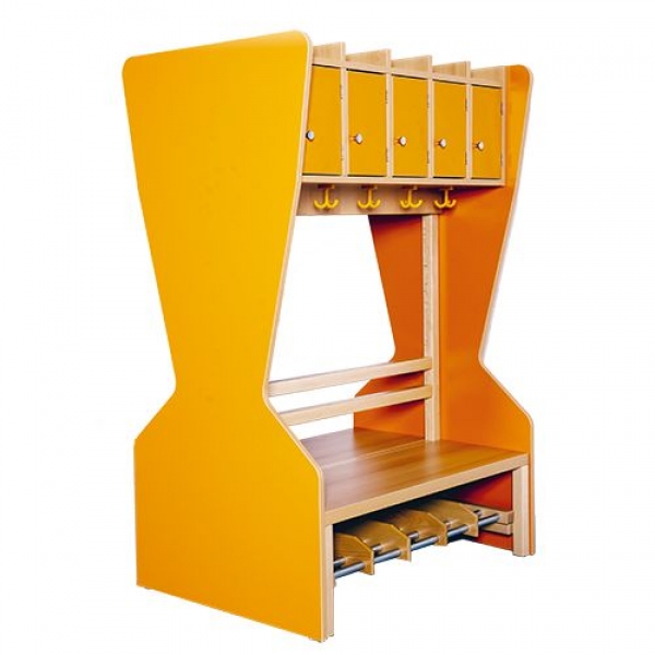 Bitte beachten: Komplettgarderoben mit Stollenrahmen / Stütze und fest montierten Oberteil müssen ab eine Sitzhöhe von 42cm / Gesamthöhe 158 cm an der Wand fixiert oder mit Seitenwangen versehen werden.
