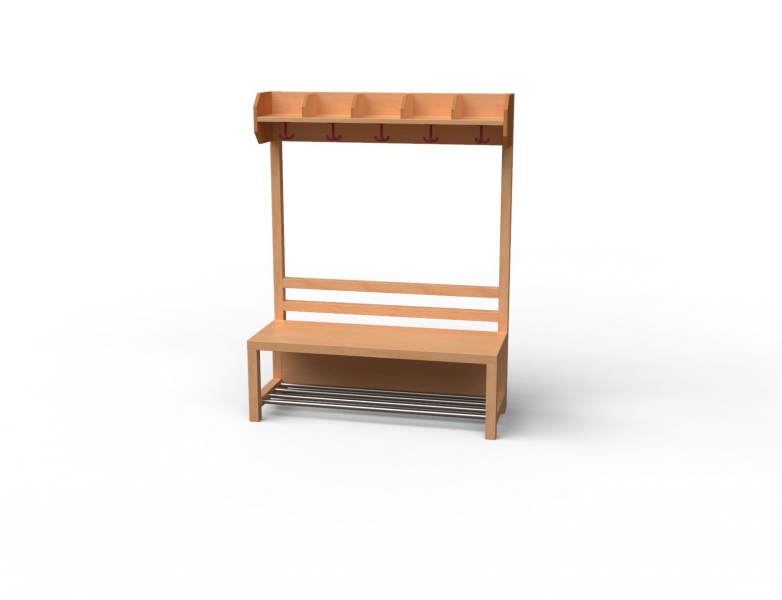 Garderoben-Set für 5 Plätze BxHxT 100 x 130 x 35 cm Stollen-Garderobenbank mit offenen Seitenteilen - MIT Alu-Rost Ablage - MIT Garderoben-H-Stütze - MIT Garderobenablage 1-reihig mit 5 3-fach Kunststoffhaken