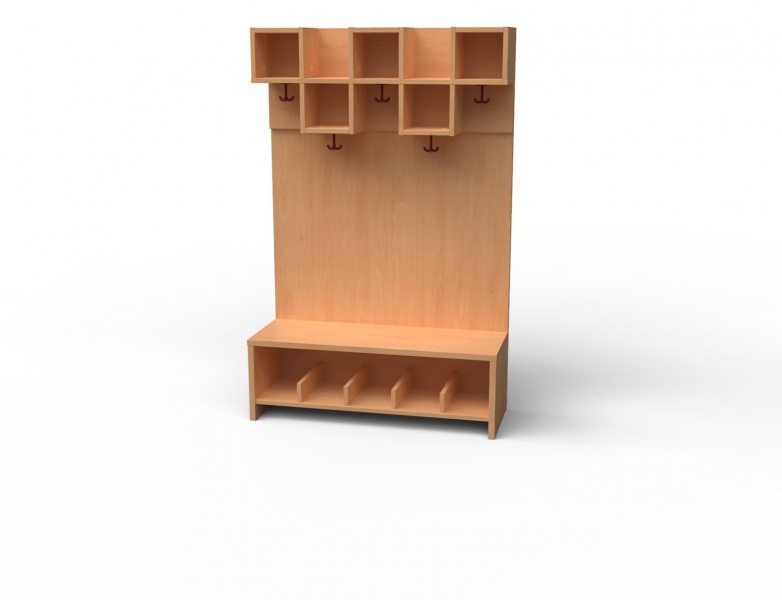 Garderoben-Set für 5 Plätze "Klassic-Line"BxHxT 100 x 155 x 35 cm Korpus-Garderobenbank mit geschlossenen Seitenteilen- MIT Ablage mit Facheinteilungen- MIT Garderoben-Paneel- MIT Garderobenablage mit versetzten Fächernmit 5 3-fach Kunststoffhaken
