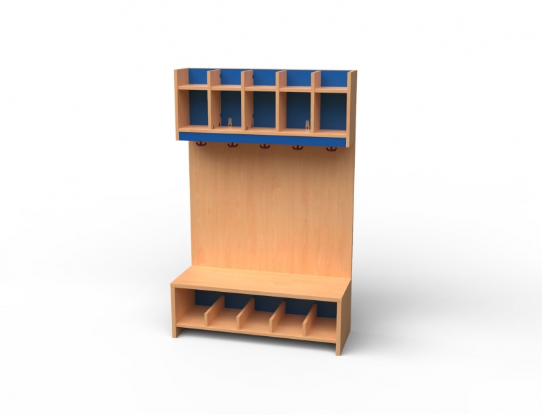 Garderoben-Set für 5 Plätze "Colour-Line"BxHxT 100 x 155 x 35 cm Korpus-Garderobenbank mit geschlossenen Seitenteilen- MIT Ablage mit Facheinteilungen- MIT Garderoben-Paneel- MIT Garderobenablage mit getrennten Fächernmit 5 3-fach Kunststoffhaken