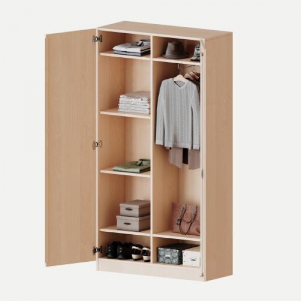 2 Türen, abschließbar, mit Mittelwand, eine Seite Garderobe, eine Seite Fachböden B/H/T: 100x190x60 cm