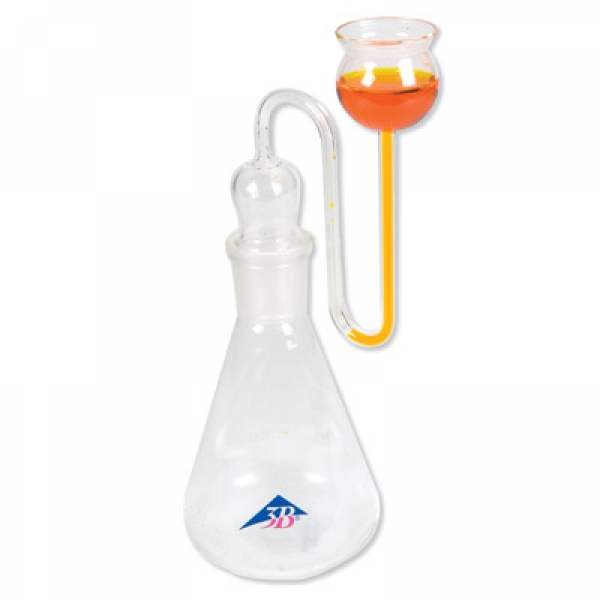 Gerät bestehend aus einem U-Rohr, das mit einem Erlenmeyerkolben verbunden ist. Das U-Rohr wird mit Wasser gefüllt, die Flüssigkeitsstände werden markiert.