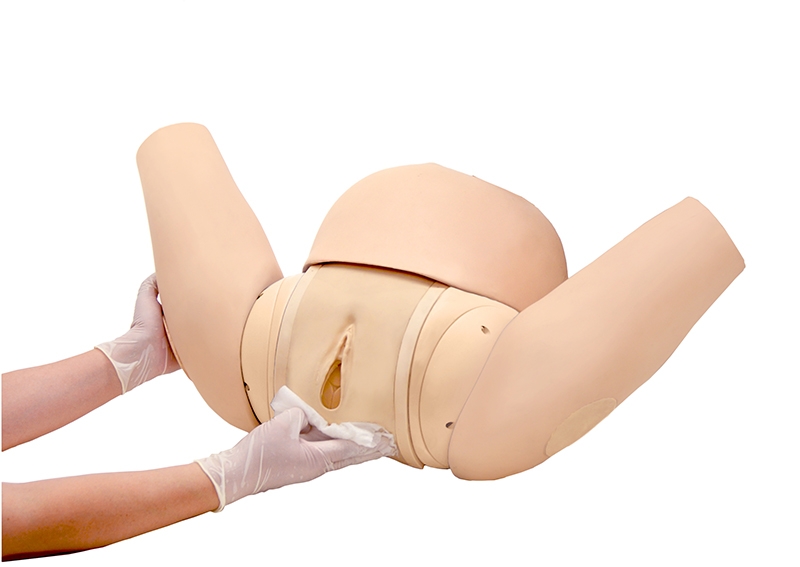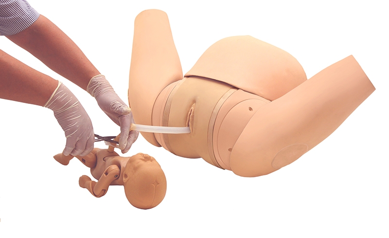 Dieser Geburtssimulator ermöglicht das Erlernen der wichtigsten Handgriffe in der Geburtshilfe. Er deckt alle Schritte ab vom Dammschutz bis zur Geburt der Plazenta.