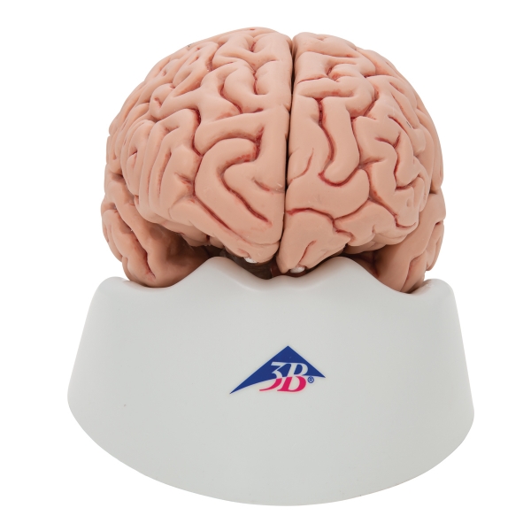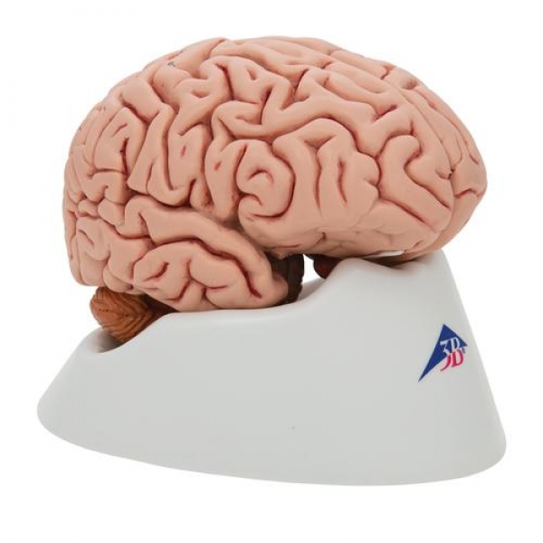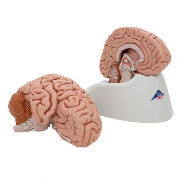 Das median geschnittenen Modell ist die anatomische Originalabformung eines echten menschlichen Gehirns. Seine linke Hälfte ist zerlegbar in: