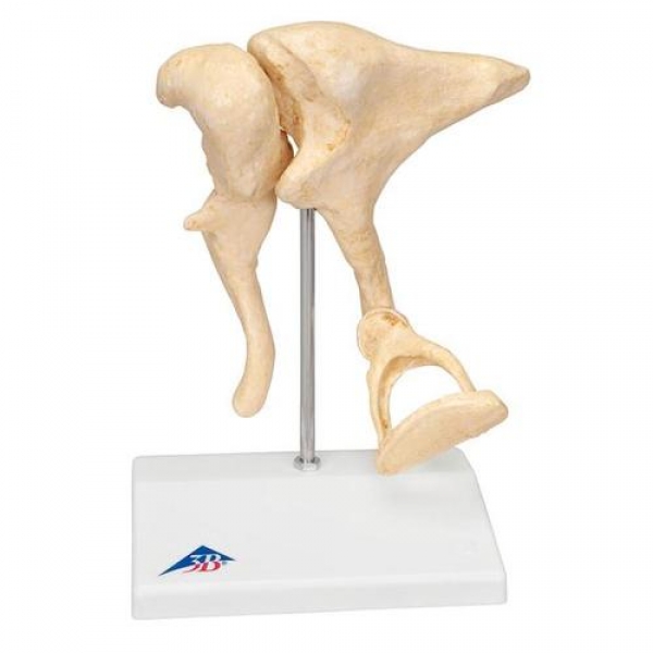 In unvergleichbarer Präzision zeigt dieses Modell die 3-dimensionale 20-fache Vergrößerung der menschlichen Gehörknöchelchen in ihrem natürlichen Gefüge.