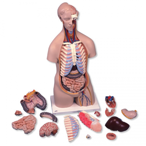 Dieser Torso ist bei Studenten besonders beliebt. Er zeigt die menschliche Anatomie sehr detailliert und ist mit folgenden abnehmbaren Teilen ausgestattet: