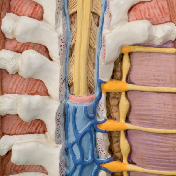 Wirbel, Bandscheiben, Rückenmark, Spinalnerven, Vertebralarterien und vieles mehr sind detailliert herausgearbeitet.