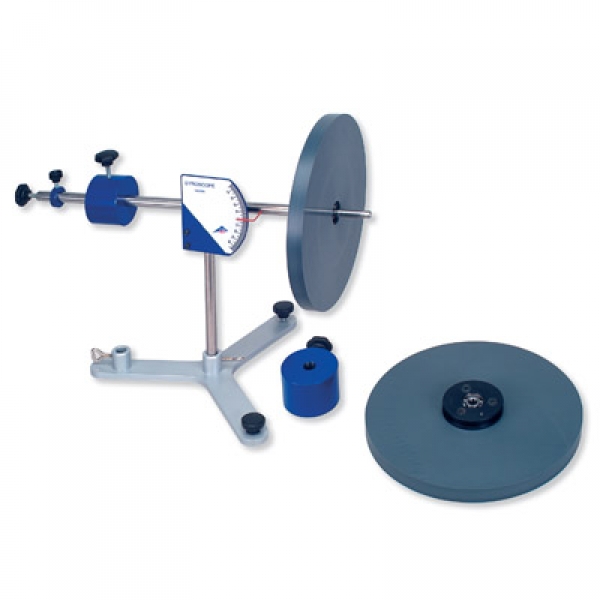 Experimentiergerät mit einer auf einem Stativstab kipp- und drehbar gelagerten Achse, auf deren einen Seite eine doppelt kugelgelagerte Kreisscheibe aufgesetzt ist. Auf der Gegenseite befindet sich ein verschiebbares Kompensationsgewicht zur Herstellung des Gleichgewichts, wobei die Feinjustierung über eine Stellschraube am Ende der Achse erfolgt. Zur Erzeugung von äußeren Drehmomenten steht ein weiteres Zusatzgewicht zur Verfügung, das ebenfalls auf die Achse geschoben werden kann. Der Neigungswinkel der Achse wird an einer gut ablesbaren Skala angezeigt. Eine Libelle ermöglicht die waagrechte Ausrichtung des Gyroskops. Die Kreischeibe kann von Hand oder mittels einer Schnur in Rotation versetzt werden, wobei das Doppelkugellager eine nahezu reibungsfreie, lange Rotationsdauer gewährleistet. Dabei erlaubt die offene Bauweise des Gyroskops eine sehr gute Beobachtung der Kreiselphänomene.
