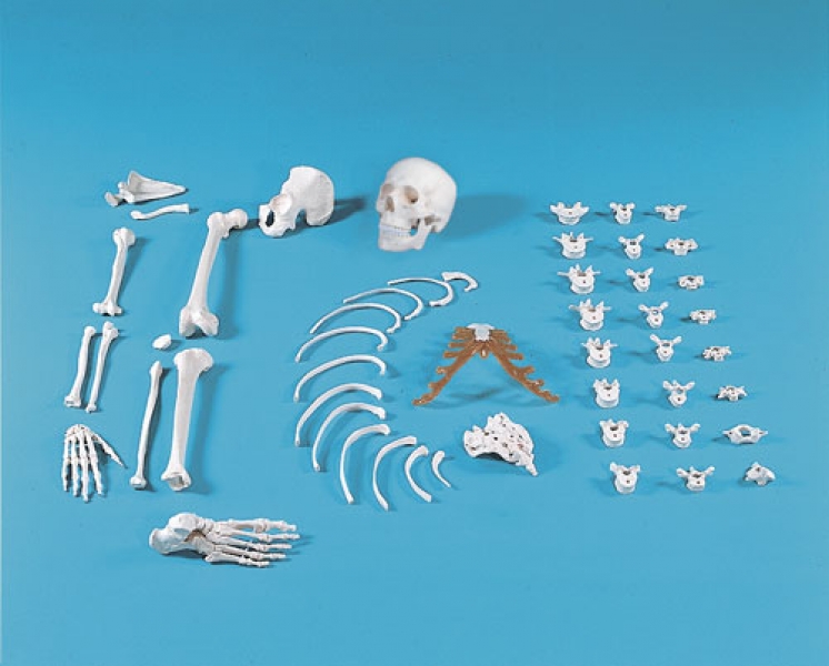 Alle rechten bzw. einmal vorkommenden Knochen des Skeletts sind einzeln dargestellt.