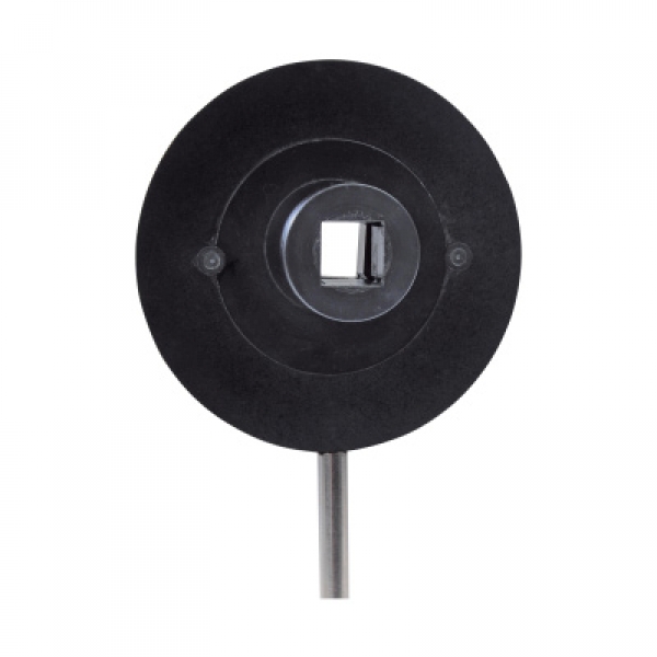 Halter mit drehbarer Aufnahme für Geradsichtprisma (Artikelnummer: 1002862). In schwarzer Metallfassung auf Stiel.