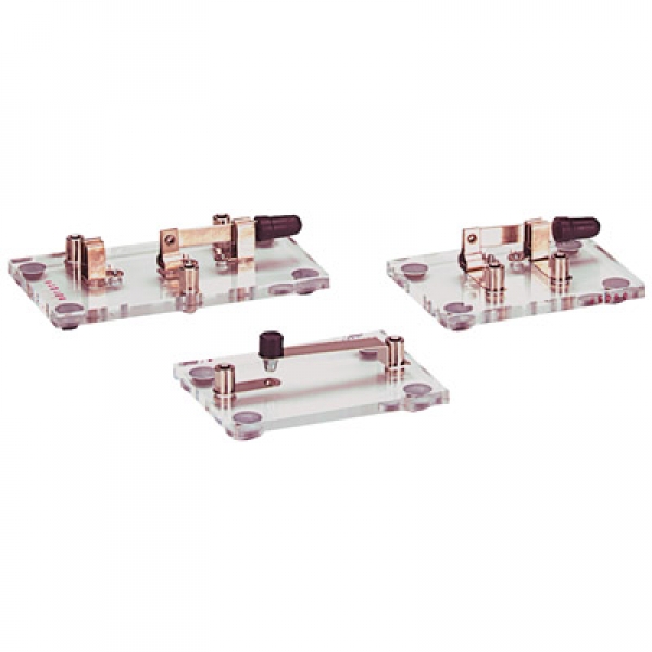 Schalter auf Acrylglassockel zum wechselseitigen Schließen bzw. Öffnen von zwei Stromkreisen.