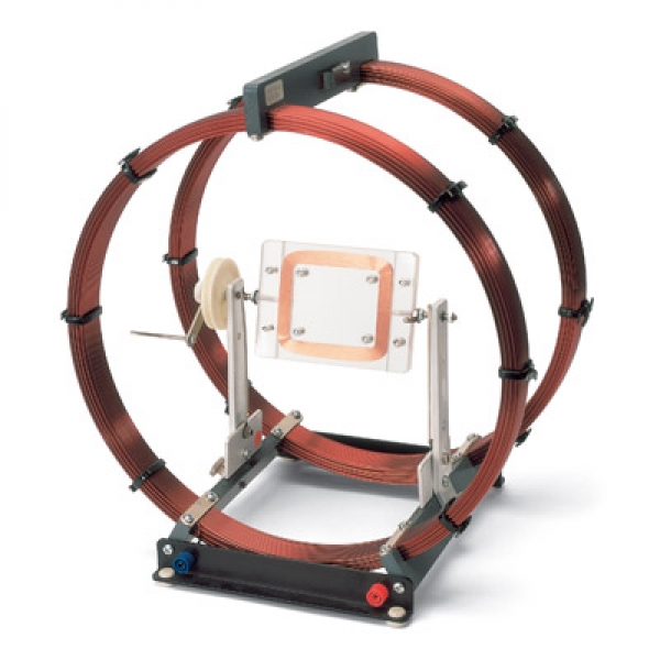 Flachspule in einem drehbar gelagerten Plexiglasrahmen zur Verwendung in Verbindung mit den Helmholtz-Spulen 300 mm (Artikelnummer: 1000906).