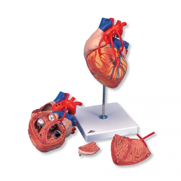 Dieses Herz in 2-facher Größe erleichtert die Identifikation der Strukturen und ist eine perfekte Hilfe in großen Klassenräumen oder Hörsälen.