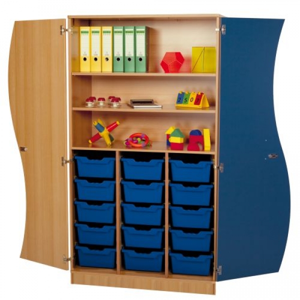 Hochschrank mit Wellentüren, 15 hohe ErgoTray Boxen & 2 Einlegeböden