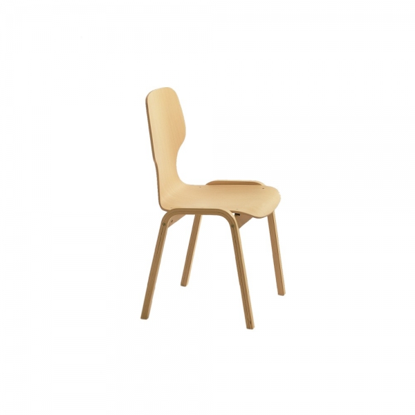Der Stuhl Carlo gehört zur Reihe der Formschalenstühle. Diese Stühle stehen für Bequemlichkeit, Belastbarkeit und leichtes Handling. Gestell und Sitzschale aus Dekor Buche