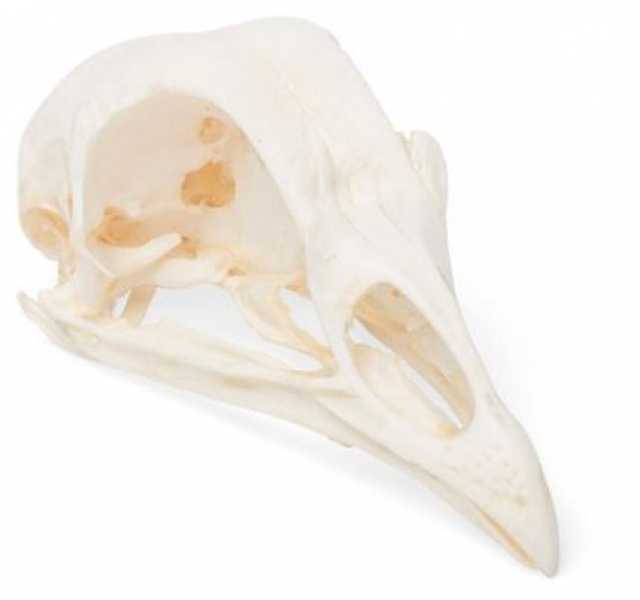 Knochenpräparat eines echten Hühnerschädels.