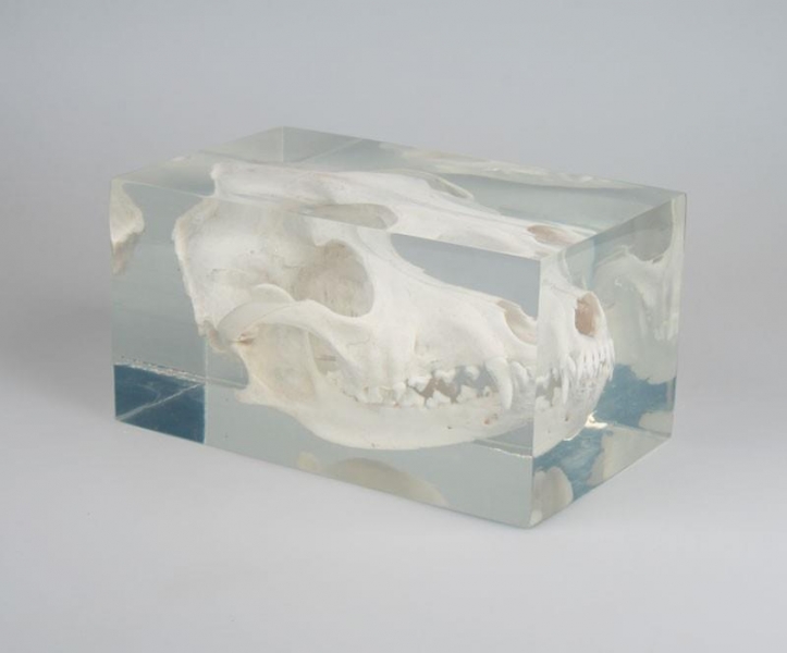 Hundeschädel in Kunststoffblock