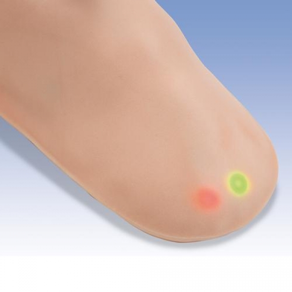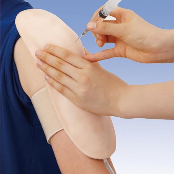 Dieser Injektionssimulator ermöglicht das Üben der intramuskulären als auch subkutanen Injektionen am Oberarm.