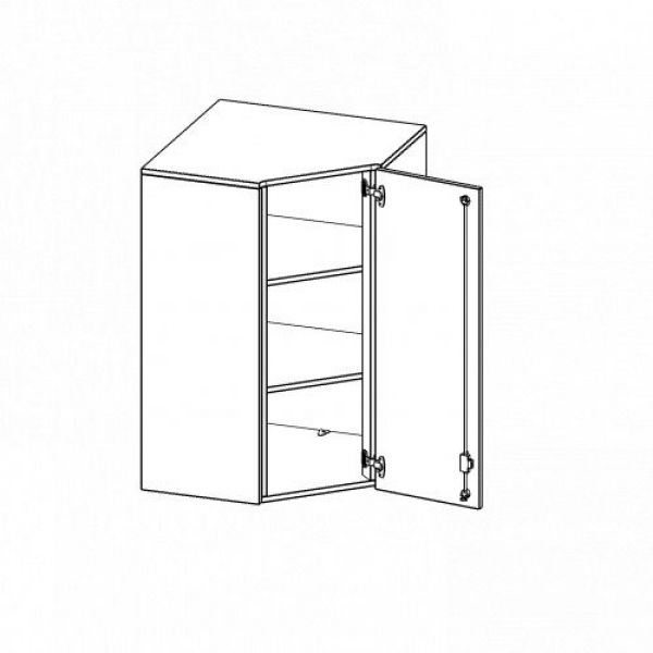 Aufsatz-Eckschrank, BxHxT 90x110x90 cm 1 Tür, abschließbar, Dreholive, 2 Diagonal-Einlegeböden Anstellseite: 50 cm