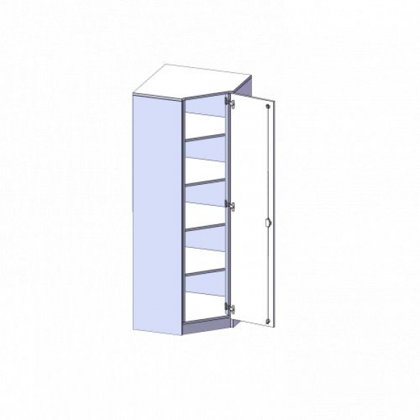 Alle Innenneckschränke werden aus melaminharzbeschichteter E1 Feinspanplatte gefertigt, die FSC zertifiziert und formaldehydfrei sind. Als Kanten verwenden wir besonders robuste 2 mm starke ABS Kanten, die unter hoher Temperatur fest verleimt werden. Bitte wählen Sie Ihr Wunschdekor aus unserer Dekorpalette aus. Die Einlegeböden sind im Raster von 32 mm verstellbar. Unsere hochwertigen Bodenträger verfügen über einen "Ausziehstop", so wird verhindert, dass Böden mit Inhalt darauf aus dem Regal oder Schrank rutschen können.