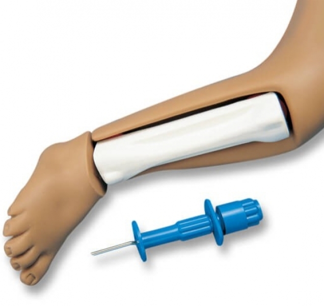 Es handelt sich hier um ein intraossäres infusionssystem mit auswechselbarem Tibiaknochen für die Pflegepuppe Neugeborenes.