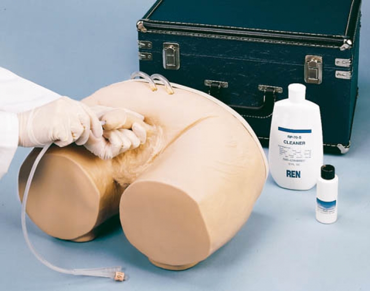 Dieser Simulator besteht aus einem männlichen Unterleib und ermöglicht, den Druck und Widerstand zu erspüren, der von den Schleimhautfalten, den Bulbus urethrae und dem inneren Harnröhrensphinkter kurz vor dem Eintritt in die Blase ausgeht. Wenn der Katheter in die Blase eintritt, fließt künstlicher Urin (Wasser) durch den Katheter. Die richtige Positionierung und Bewegung des Penis während der Katheterisierung lässt sich einfach üben. Lieferung mit Katheter, Gleitmittel und Transportkoffer.