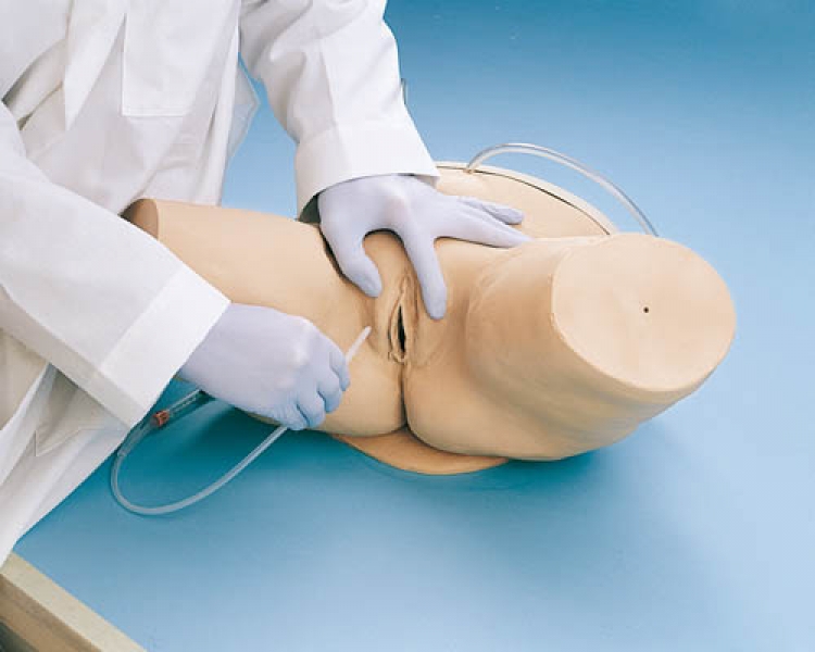 Dieser Simulator besteht aus einem weiblichen Unterleib und ermöglicht Ihnen, den Druck und Widerstand bei Einführung eines Katheters durch Harnröhre und Sphinkter zu erspüren.
