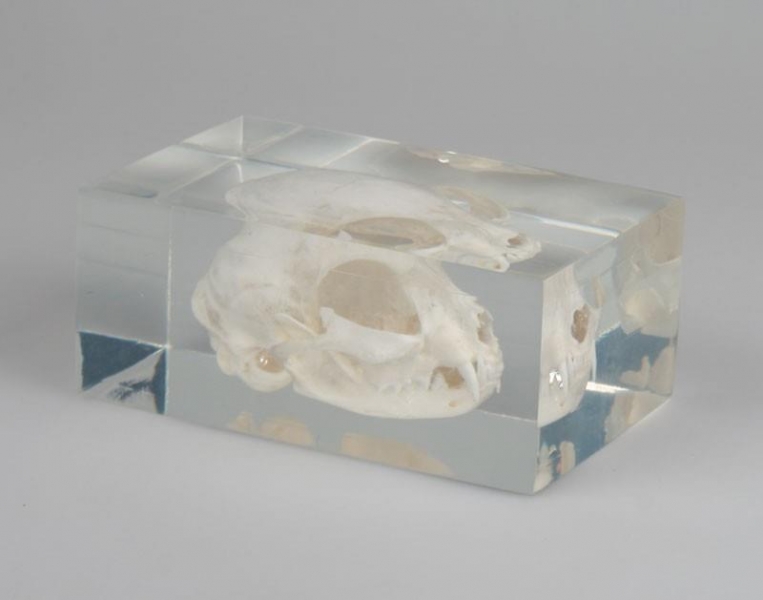 Katzenschädel in Kunststoffblock