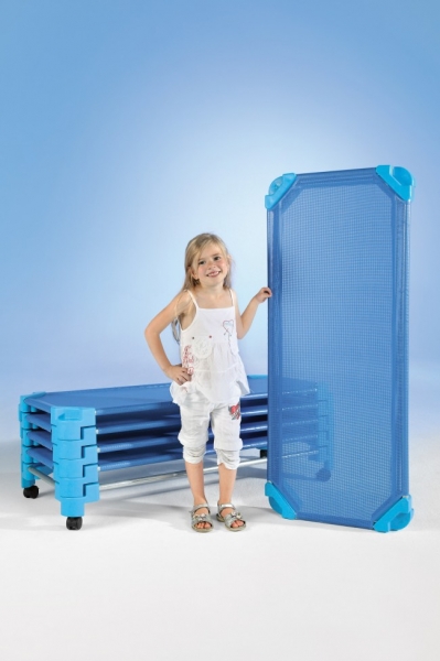 Kunststoffkinderbett stapelbar Schnell hervorgeholt, bieten diese praktischen Kinderbetten Ruhe und Entspannung. Der Rahmen ist eine leichte Kunststoff-Metall-Konstruktion mit einer Liegefläche aus patentiertem Kunststoffgewebe.