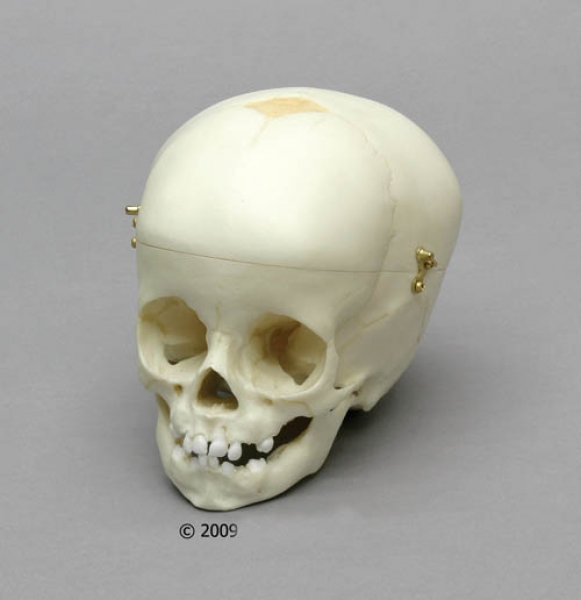 Erstklassiger Naturabguss des Schädels eines 12 Monate alten Kindes in beeindruckend guter Detailwiedergabe und abnehmbarer Schädeldecke.
