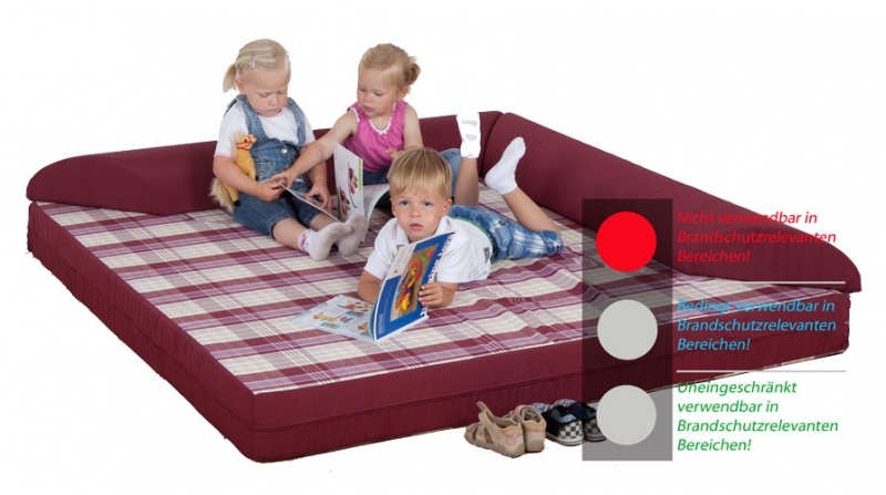 Die Polsterung sowie die Bezüge sind auch in brandgeschützter Ausführung (B1) lieferbar. D