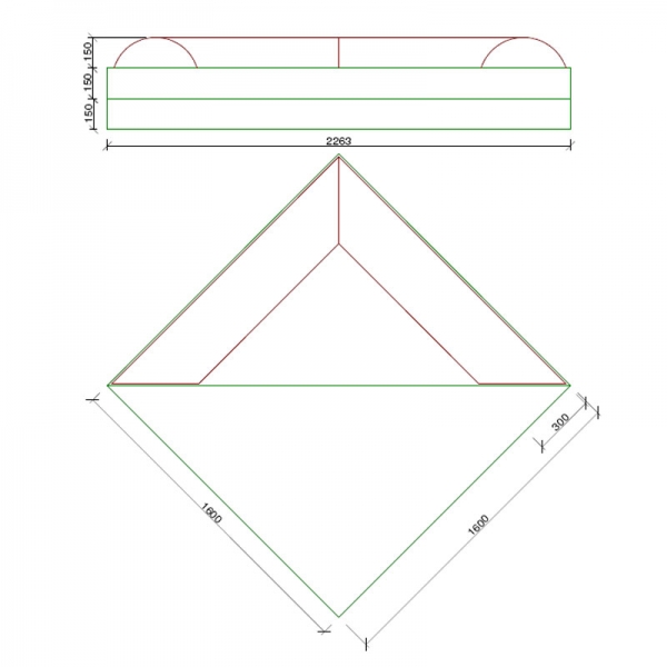 Maße der Halbrundrollen: Breite 30 cm - Höhe 15 cm - Tiefe 160 cm