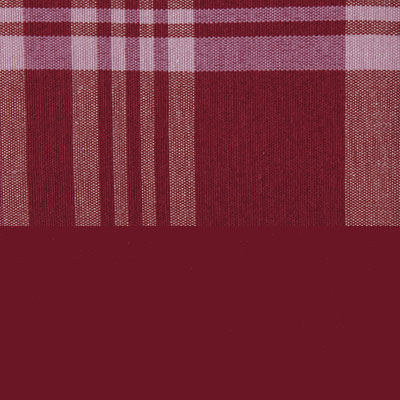 Sitzflächen mit Baumwoll-Stoff Rot kariert bezogen, alle anderen Flächen mit passendem Stoff Uni Rot.  Abnehmbare Bezüge sind bei 30° waschbar.