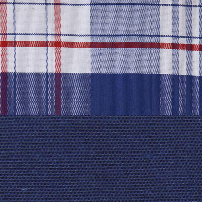 Sitzflächen mit Baumwoll-Stoff Blau kariert bezogen, alle anderen Flächen mit passendem Stoff Uni Rot.  Abnehmbare Bezüge sind bei 30° waschbar. Als Schaumstoff verwenden wir hochwertigen Standardschaumstoff. Material: 80% Baumwolle 20% Polyester mit Füllung aus 100% Polyurethan (PU)