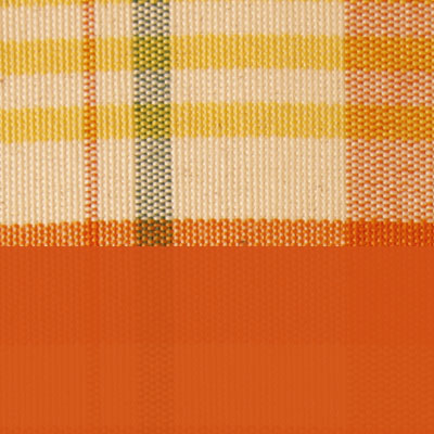 Sitzflächen mit Baumwoll-Stoff Orange kariert bezogen, alle anderen Flächen mit passendem Stoff Uni Orange.  Abnehmbare Bezüge sind bei 30° waschbar.
