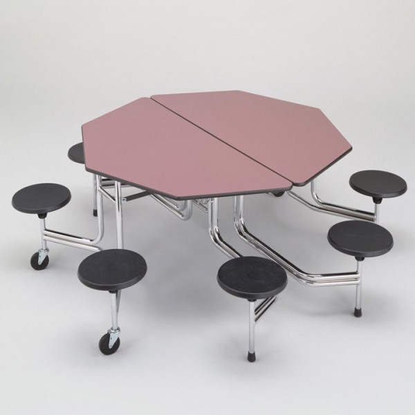 Mit den Tisch-Sitz-Kombinationen können Sieeinfach und schnell mehr Schüler auf gleichem Raum platzieren. An den Tisch-Sitz-Kombinationen finden 25 % bis 40 % mehr Schüler Platz als an Standardtischen gleicher Größe mit separaten Stühlen. Es werden nicht nur die Schüler effizienter platziert, auch die Gänge können kleiner gehalten werden, da keine Stühle herausgeschoben werden müssen. Mit dem attraktiven ovalen oder achteckigen Design fördern diese Klapptische außerdem die Interaktion der Schüler. Dadurch sind sie ideal für den Einsatz in der Mensa oder als Gruppenprojekt-Konfiguration geeignet. Auf jeden Aufbau folgt ein Abbau