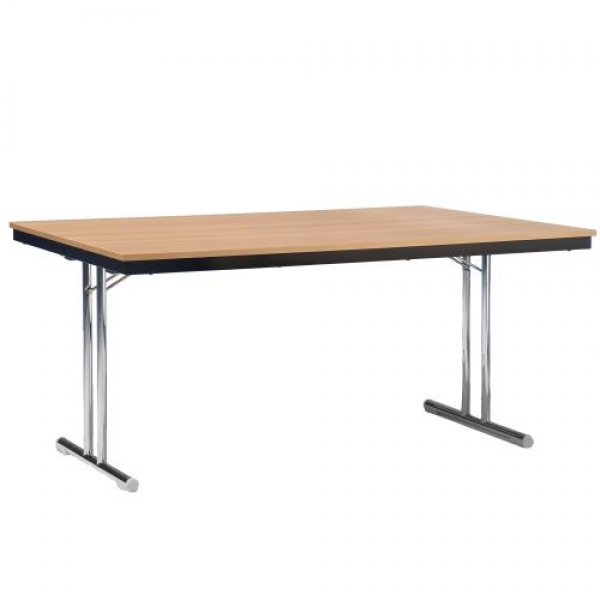 Klapptisch mit T-Fuß Chromgestell und melaminharzbeschichteter Tischplatte
