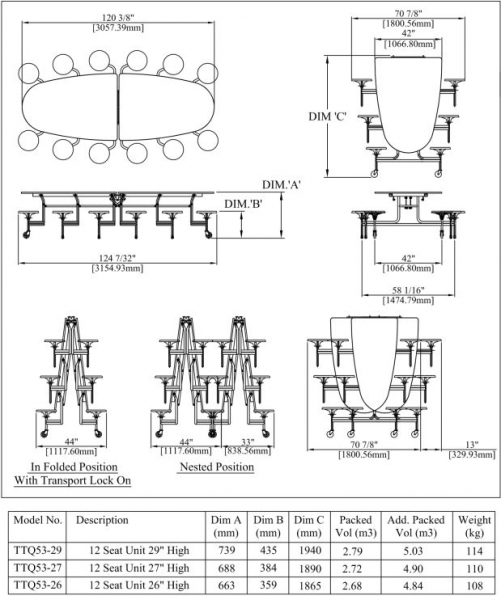 • Mobile klappbare Tisch-Sitz-Kombinationen können von nur einer Person aufgestellt werden und minimieren den manuellen Transport sowie die Aufbauzeit