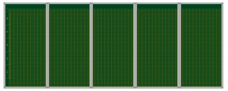 Die Aufteilung der "Start - Anfangsttafel" beginnt links mit einer Tages (Montag bis Freitag)- und einer Stunden-Spalte, anschließend folgen die Klassenspalten nach Anzahl der Klassen (z.B. 10/15 Klassen).