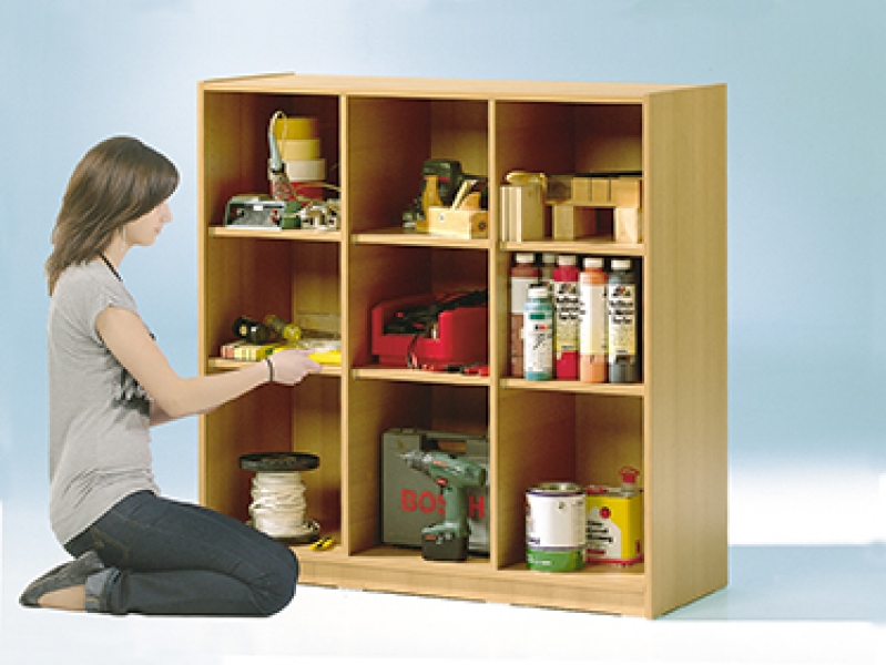 Klassenregal offen als Unterschrank mit 2 Mittelwänden, je  Fach 2 lose höhenverstellbare Böden.