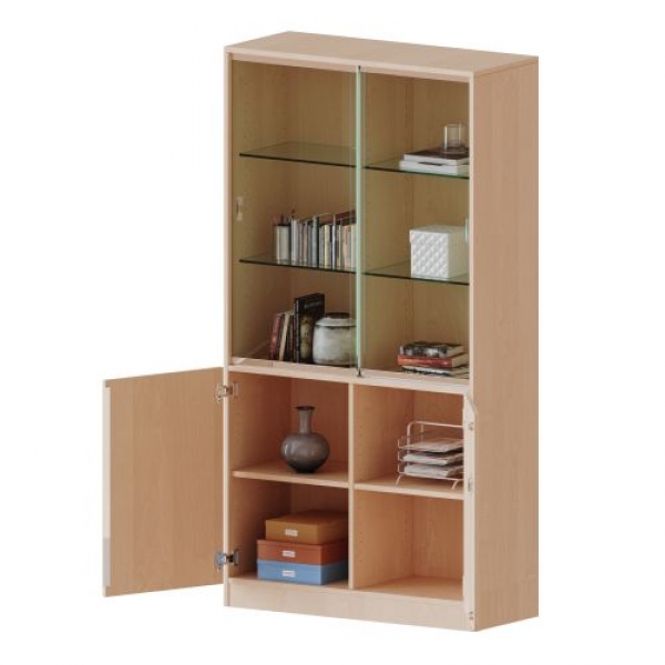 Die evo180 Kombinations Schränke mit Glasschiebetüren in verschiedenen Breiten und Varianten sind eine praktische Mischung aus Schrank mit abschließbaren Türen und offenem Regal. Neu in unserem evo180 Schrankwandprogramm. Sie bieten Ihnen die Möglichkeit, im unteren Teil Dinge hinter abschließbaren Türen zu verstauen, und im oberen Teil, der mit Glasschiebetüren ausgestattet ist, Dinge unterzubringen, die Sie gerne ausstellen und präsentieren möchten. Die Rückwand ist als Sichtrückwand ausgeführt, dementsprechend eignen sich alle evo180 Einzelschränke oder Schrankwände auch als Raumteiler.