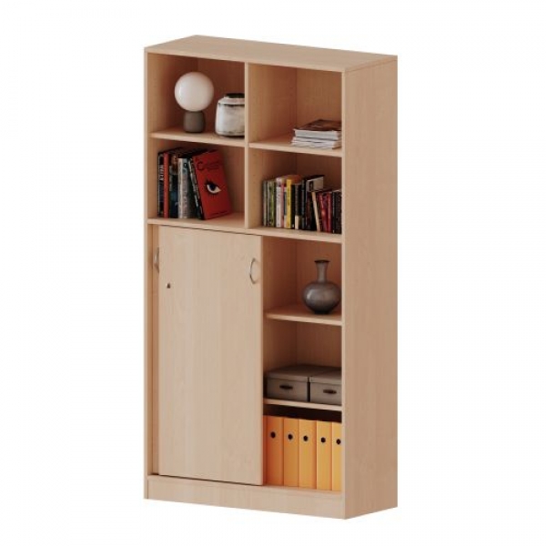 | | Kombischrank, 5 Ordnerhöhen, Schiebetüren unten (3 OH), oben 2 offene FächerVersandkostenfreie Lieferung! 2 Schiebetüren, abschließbar, B/H/T: 100x190x60 cm