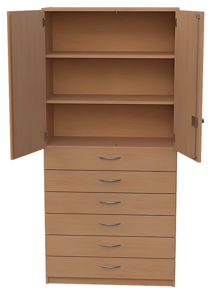 Kombischrank, BxHxT 90 x 190 x 40 cm oben: 2 Türen, abschließbar, Dreholive, 2 Einlegeboden unten: 6 Schubkästen,Segmentbogengriffe( RM 128 mm ) verchromt matt, SoftClose Auszüge lichte Nutzlänge der Schubkästenbeträgt 33 cm