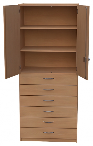Kombischrank, BxHxT 80 x 190 x 50 cm oben: 2 Türen, abschließbar, Dreholive, 2 Einlegeboden unten: 6 Schubkästen,Segmentbogengriffe( RM 128 mm ) verchromt matt, SoftClose Auszüge lichte Nutzlänge der Schubkästenbeträgt 33 cm