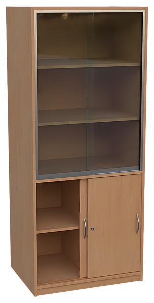 Kombischrank, BxHxT 80 x 190 x 60 cm oben: 2 Glas-Schiebetüren, abschließbar, 2 Einlegebödenunten: 2 Schiebetüren, abschließbar, Mittelwand, 2 x 1 EinlegebodenSegmentbogengriffe ( RM 128 mm ) verchromt matt