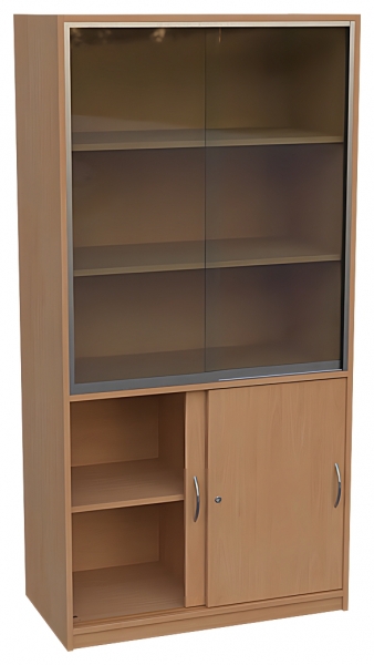Kombischrank, BxHxT 95 x 190 x 50 cm oben: 2 Glas-Schiebetüren, abschließbar, 2 Einlegebödenunten: 2 Schiebetüren, abschließbar, Mittelwand, 2 x 1 EinlegebodenSegmentbogengriffe ( RM 128 mm ) verchromt matt