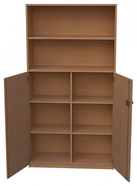 Kombischrank, BxHxT 100 x 190 x 40 cm oben: offen, 1 Einlegebodendarunter: 1 fester Fachbodenunten: 2 Türen, abschließbar, Dreholive, Mittelwand,2 x 2 Einlegeböden
