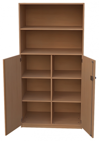 Kombischrank, BxHxT 95 x 190 x 60 cm oben: offen, 1 Einlegebodendarunter: 1 fester Fachbodenunten: 2 Türen, abschließbar, Dreholive, Mittelwand,2 x 2 Einlegeböden